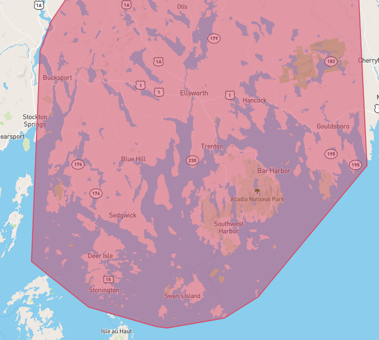 Area events can be represented by a polygon. The example image shows this flood warning for several rivers in Mississippi, USA.
