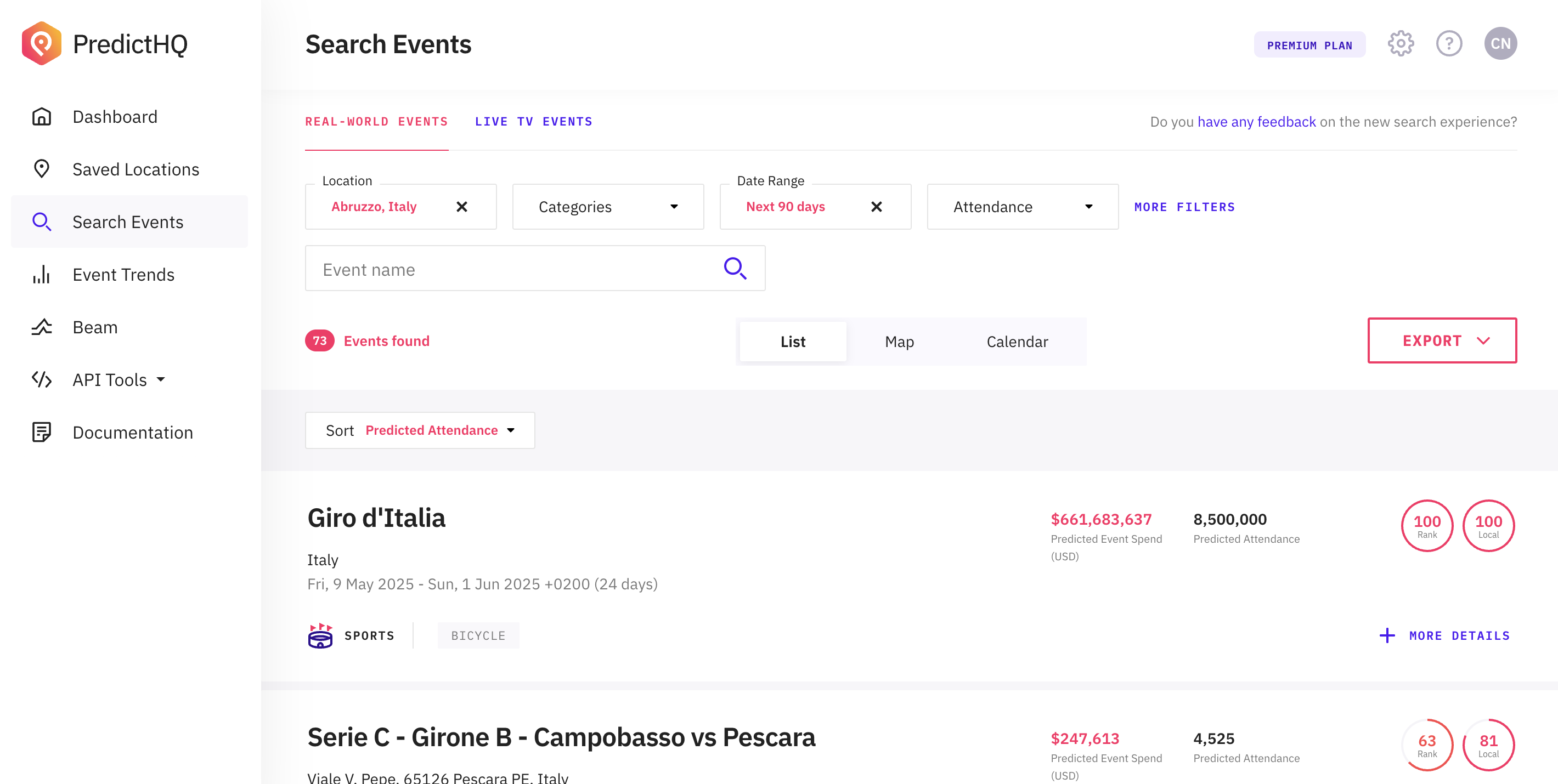 See the article on [using-the-webapp](https://docs.predicthq.com/webapp-support/webapp-overview/using-the-webapp "mention") for more details.