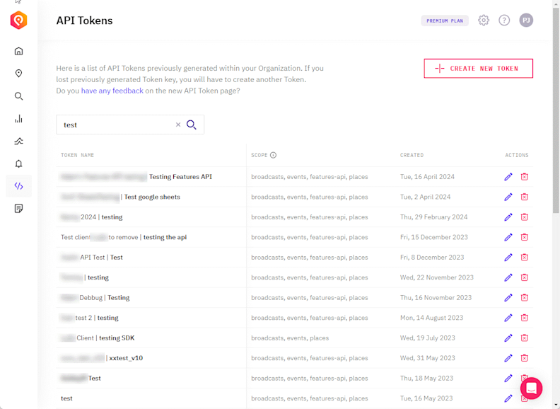 <figure><img src="https://4203168746-files.gitbook.io/~/files/v0/b/gitbook-x-prod.appspot.com/o/spaces%2FRi9YaBiPckypV66Jggc2%2Fuploads%2Fgit-blob-c8fbd9c298ede3ec634d63e272cb0513b814634c%2Fimage%20(23).png?alt=media" alt=""><figcaption><p>API Tokens page with a list of created tokens</p></figcaption></figure>